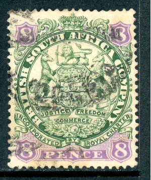 Rhodesia 1896 British QV 1s Green & Mauve DIE 1 SG #34 VFU S587