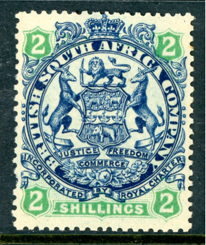 Rhodesia 1896 British QV 2 Shillings Indigo & Green DIE 2 SG #47 Mint S502