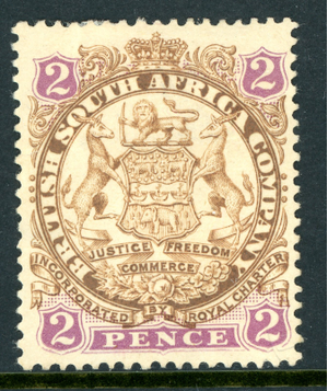 Rhodesia 1896 British QV 2p Brown & Mauve DIE 1 SG #30 Mint S615