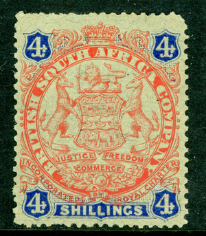 Rhodesia 1896 British QV 4 Shillings Orange Red & Blue SG #37 Mint S494