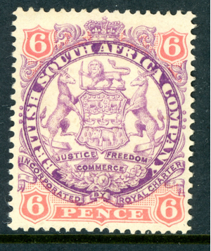 Rhodesia 1896 British QV 6p Mauve & Pink SG #33 Mint S490