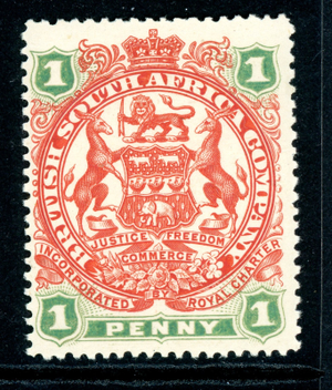 Rhodesia 1897 British QV 1p Scarlet & Emerald SG #67 Mint R472