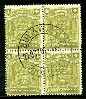 Rhodesia 1898 British QV 4p Olive SG #82 Block VFU S812