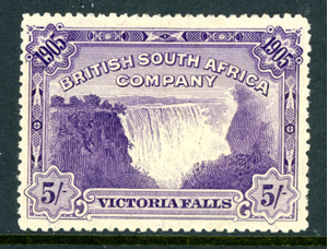 Rhodesia 1905 British KEVII 5' Shilling Violet Victoria Falls SG#99 Mint S446