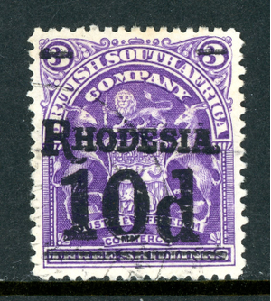 Rhodesia 1909 British KEVII 10p/3sp Deep Violet SG #117 VFU R915