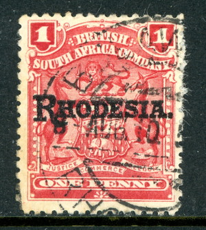 Rhodesia 1909 British KEVII 1p Carmine Rose SG #101 VFU R931
