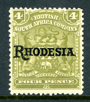 Rhodesia 1909 British KEVII 4p Olive SG #105 Mint S456