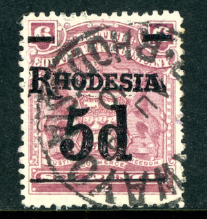 Rhodesia 1909 British KEVII 5p/6p Red Purple SG #114 VFU R909