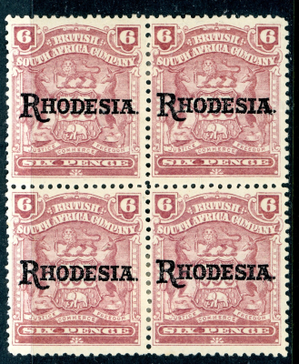 Rhodesia 1909 British KEVII 6p Reddish Purple Block SG #106 Mint S724