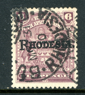 Rhodesia 1909 British KEVII 6p Reddish Purple SG #106 VFU R901