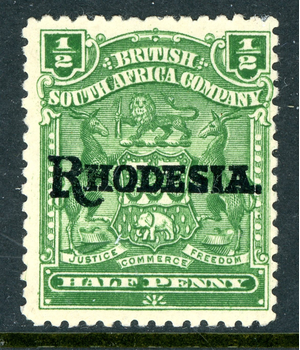 Rhodesia 1909 British KEVII ½p Deep Green Coat of Arms OP SG#100 Mint S447