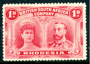 Rhodesia 1910 British KEVII 1p Rose Red Double Head SG #125 Mint S396