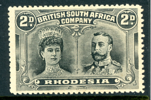 Rhodesia 1910 British KEVII 2p Black & Grey Black Double Head SG #130 Mint S400