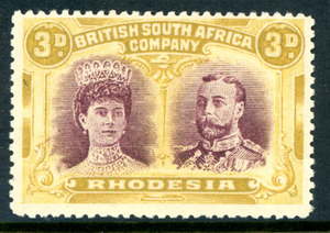 Rhodesia 1910 British KEVII 3p Purple & Ochre Double Head SG#134 Mint S405