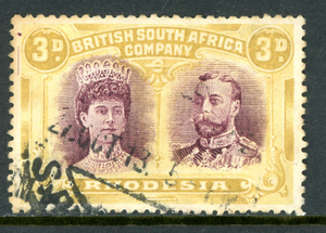 Rhodesia 1910 British KEVII 3p Purple & Ochre SG #134 VFU R968