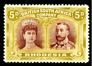 Rhodesia 1910 British KEVII 5p Purple Brown & Olive Yellow SG #141a Mint S369