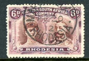 Rhodesia 1910 British KEVII 6p Red Brown & Mauve SG #144 VFU R969