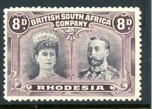 Rhodesia 1910 British KEVII 8p Black & Purple Perf 13½ SG #185 Mint S363