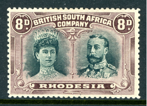 Rhodesia 1910 British KEVII 8p Greenish Black & Purple SG #148 Mint S374