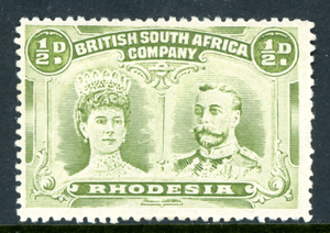 Rhodesia 1910 British KEVII ½p Olive Green Double Head SG #121 Mint S713