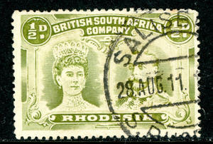 Rhodesia 1910 British KEVII ½p Olive Green SG #121 VFU R948