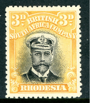 Rhodesia 1913 British KGV 3p Black & Yellow Head Die 1 Perf 15 SG #215 Mint S354