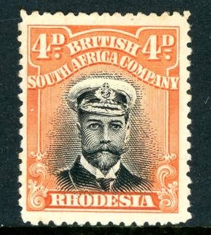 Rhodesia 1913 British KGV 4p Black & Org RedHead Die 1 Perf 14 SG #211 Mint S350