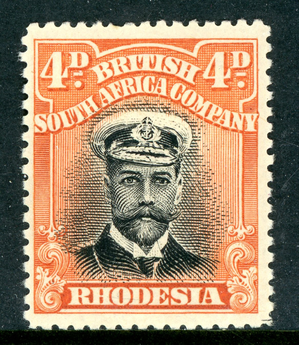 Rhodesia 1913 British KGV 4p Black & Org RedHead Die 1 Perf 15 SG #216 Mint S355