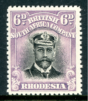 Rhodesia 1913 British KGV 6p Black & Mauve Head Die 1 Perf 15 SG #217 Mint S356