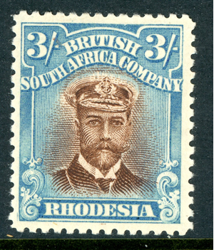 Rhodesia 1913 KGV 3' Chestnut & Bright Blue Head Die 2 Perf 14 SG #237 Mint S313