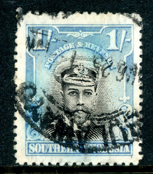 Southern Rhodesia 1924 British KGV 1' Black & Light Blue Admiral SG #10 VFU S28