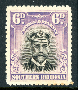Southern Rhodesia 1924 British KGV 6d Black & Mauve Admiral SG #7 Mint S788
