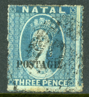 GANDALF - British Colonies 1869 Natal 3p Blue Scott #31 VFU U603