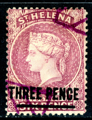 British Colonies 1868 St Helena 3p/6p Dark Violet Sc #20 VFU H329⭐⭐⭐⭐