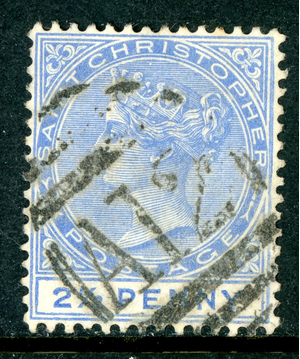 St Christopher 1884 British 2½p Ultra CCA Perf 14 SG #16 VFU S19