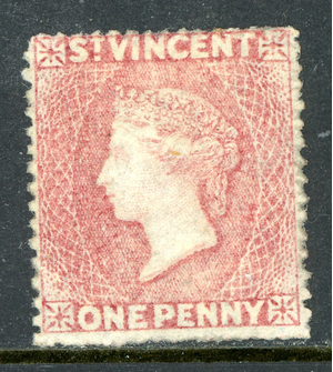 St. Vincent 1862 British Colony QV 1p Rose SG #2 Rough Perf ~16x14 Mint O982
