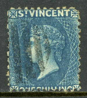 St. Vincent 1869 British Colony QV 1s Indigo Perf 12½ SG #9 VFU O998