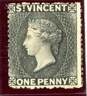 St. Vincent 1872 British Colony QV 1p Black Wmk Star SG #18 Mint M417