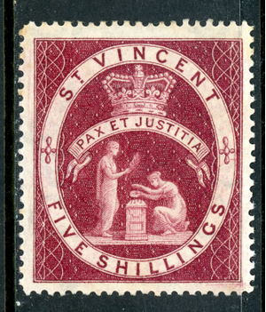 St. Vincent 1888 British Colony QV 5s Carmine Lake SG #54 Mint P29