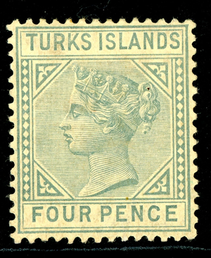 British Colony 1884 Turks Islands 4p Gray Scott #50 Die A Mint O164
