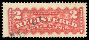 Canada F1b Used VF 2¢ Registered Stamp Unitrade $150.00 - Stuart Katz