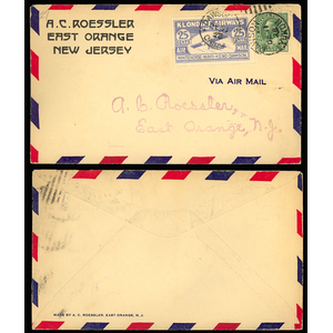 Canada CL45 Dawson to East Orange, NJ "Roessler Semi-official Cover Stuart Katz