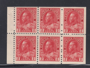 Canada 106a, 2¢ Carmine George V booklet pane of 6, MNH, F/VF, Scott $80