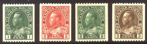 Scott #131-34: 1915-25 P12 Admiral Coils Centering & Condition: Mint. Fresh. Very Fine and CHOICE Set! Reverse (Gum Side): Original gum. Never Hinged. #133 has glazed gum. Faults / Imperfections: None The item pictured is the actual item you are purchasing, unless otherwise noted. I also offer an interest-free layaway plan. Ask me about it!" All items will be mailed a day or two after payment is received. ![]() ![]() ![]() --------------------------------------------------------------------------------