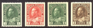 Scott #131-34: 1915-25 P12 Admiral Coils Centering & Condition: Mint. Fresh. Very Fine and CHOICE Set! Reverse (Gum Side): Original gum. Never Hinged. #133 has glazed gum. Faults / Imperfections: None The item pictured is the actual item you are purchasing, unless otherwise noted. I also offer an interest-free layaway plan. Ask me about it!" All items will be mailed a day or two after payment is received. --------------------------------------------------------------------------------