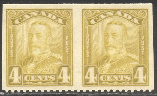 Scott #152b: 1929 4c Bistre, Imperf Between Pair Centering & Condition: Mint. Fresh. Very Fine pair. Reverse (Gum Side): Original gum. Never Hinged. Faults / Imperfections: None The item pictured is the actual item you are purchasing, unless otherwise noted. I also offer an interest-free layaway plan. Ask me about it!" All items will be mailed a day or two after payment is received. ![]() ![]() ![]() --------------------------------------------------------------------------------