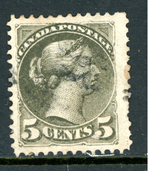 Canada 1876 QV Small Queen 5¢ Slate Green Scott #38 VFU Q120