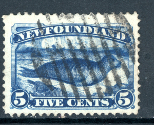 Canada 1887 QV Newfoundland 5¢ Dark Blue Walrus Scott #54 VFU G980