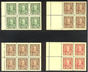 Scott #217b-219a: 1935 K G V Booklet Panes Centering & Condition: Mint. Fresh. Very Fine group. Reverse (Gum Side): Original gum. Never Hinged. Faults / Imperfections: None The item pictured is the actual item you are purchasing, unless otherwise noted. I also offer an interest-free layaway plan. Ask me about it!" All items will be mailed a day or two after payment is received. --------------------------------------------------------------------------------