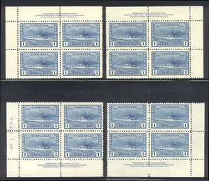 Scott #262: 1942 $1.00 Destroyer Centering & Condition: Mint. Fresh. Very Fine Matched Plate Block set. Reverse (Gum Side): Original gum. Never Hinged except the Upper Left block has a tiny Faults / Imperfections: None The item pictured is the actual item you are purchasing, unless otherwise noted. I also offer an interest-free layaway plan. Ask me about it!" All items will be mailed a day or two after payment is received. ![]() ![]() ![]() ![]() ![]() -------------------------------------------------------------------------------- Please click any of the following to read: |